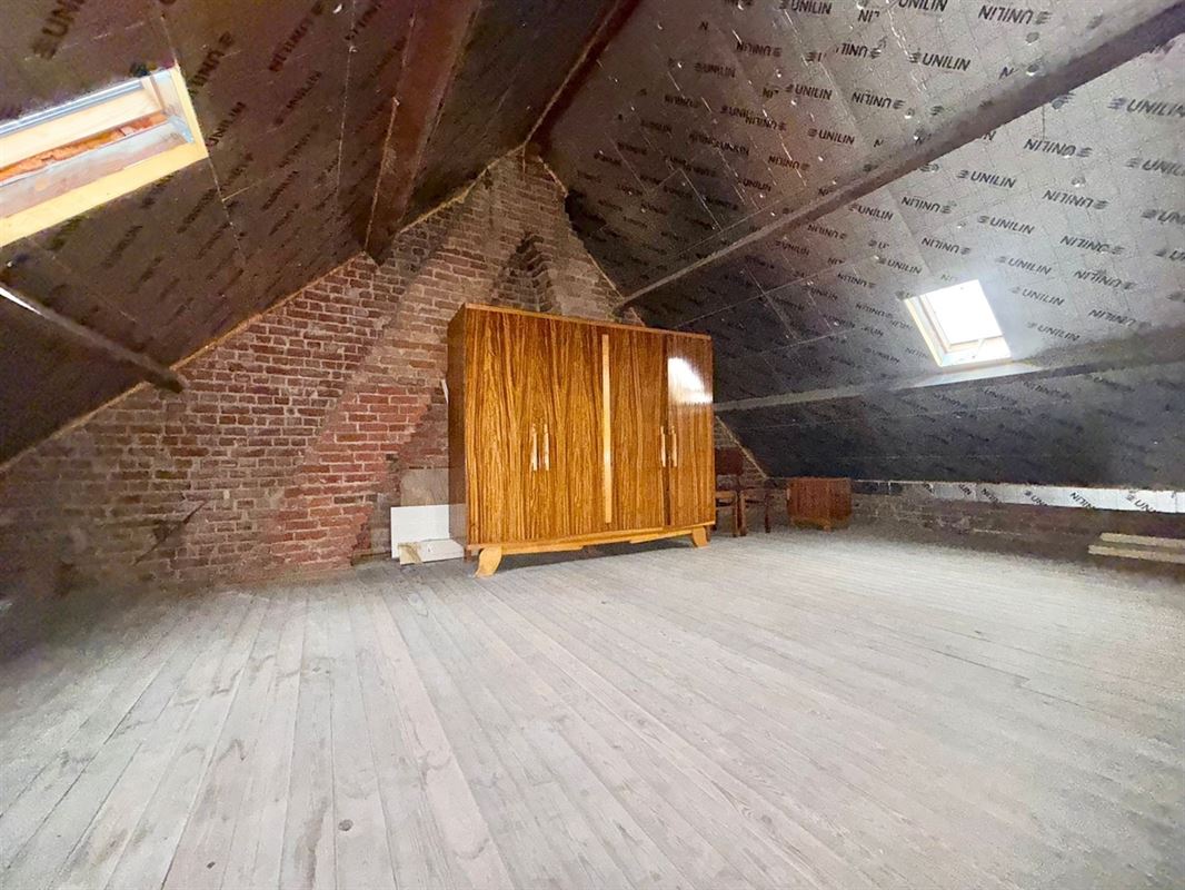 Deze gezellige woning beschikt over een inkomhal, een leefruimte met aansluitende keuken, badkamer en een tuin om heerlijk te ontspannen. Op de eerste verdieping zijn er twee slaapkamers, met daarboven een zolder die kan worden ingericht als twee extra slaapkamers of multifunctionele ruimte. Gelegen in een groene, aangename omgeving met een vlotte verbinding naar belangrijke invalswegen. Een woning met veel potentieel om er iets moois van te maken.